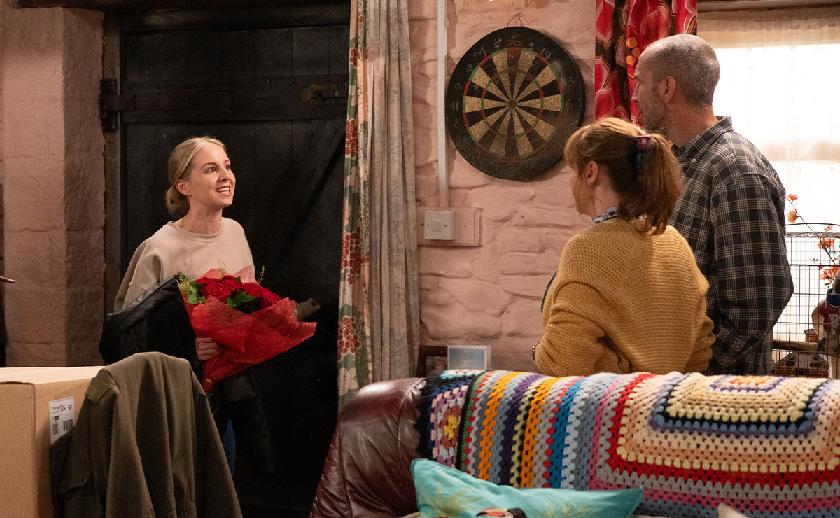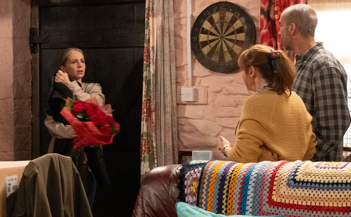 When an elaborate bunch of condolence flowers later arrive at the cottage without a note, Belle is convinced that they are from Tom, and that he is continuing to taunt her. Sam (James Hooton) and Lydia (Karen Blick) are concerned about Belle’s state of mind as she heads out to confront Tom, breaking her bail conditions in the process.