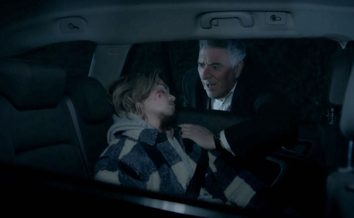 In a panic as he scrambles to escape the police, Jade’s lackey Deano lashes out at Aaron and punches him.