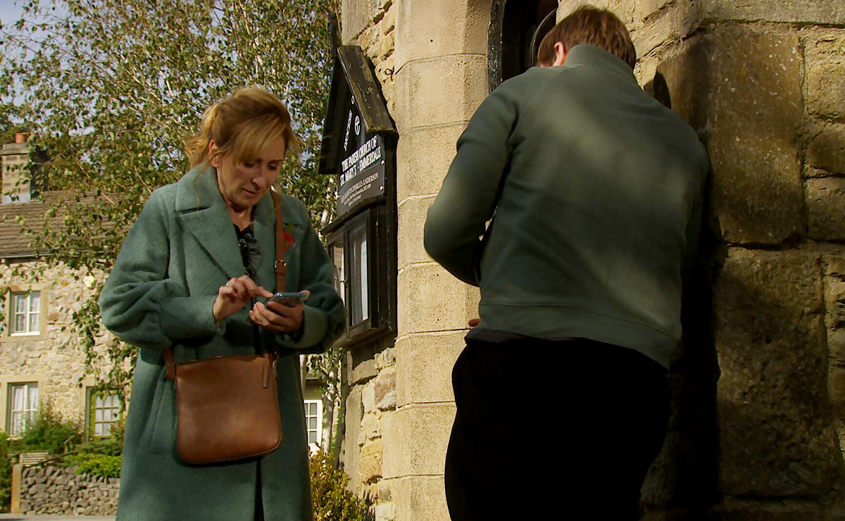 Elsewhere, Tina (Samantha Power) continues to pile the pressure on cousin Mandy (Lisa Riley), as she sets herself up outside Wishing Well Cottage.
