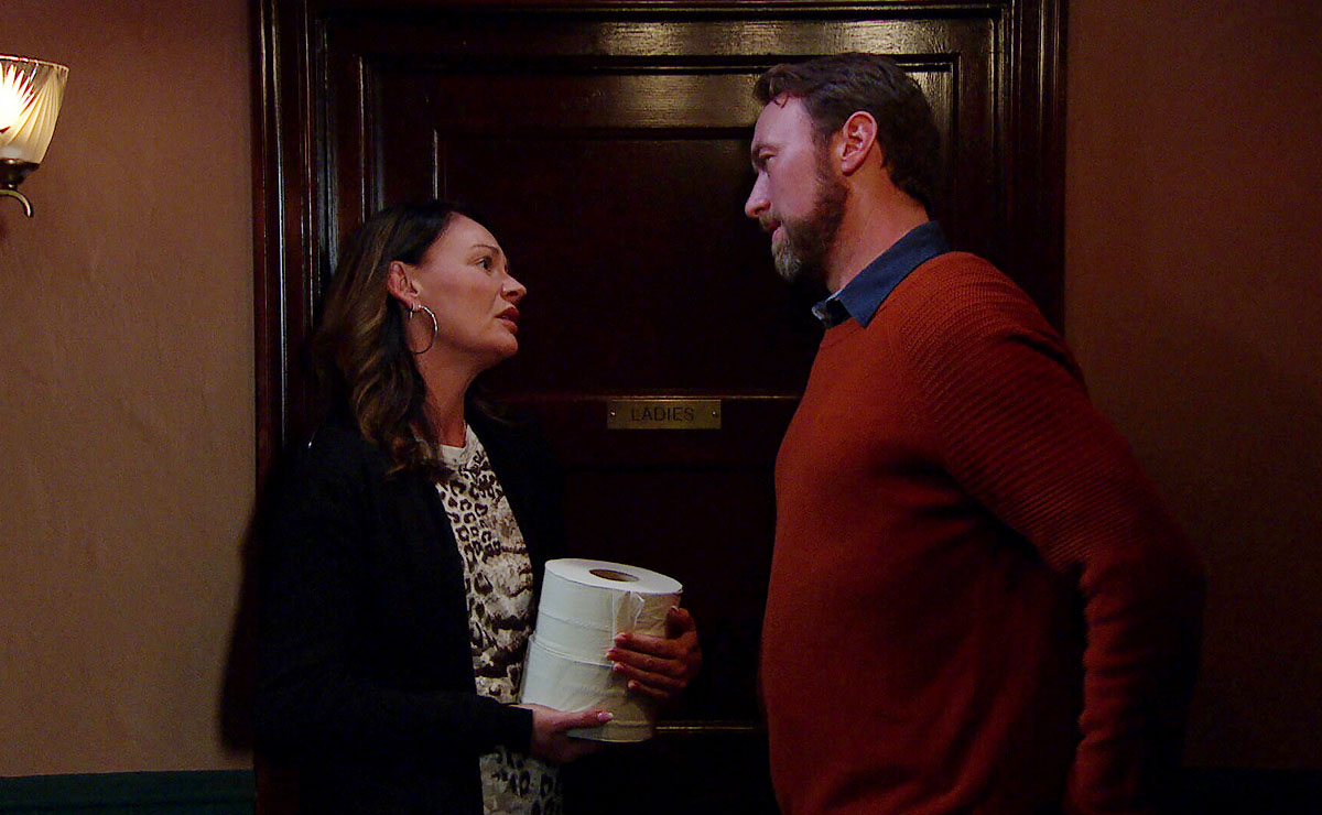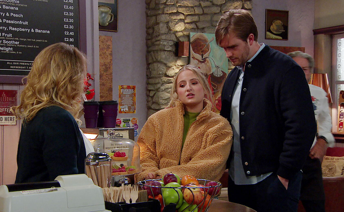 Elsewhere in the village, Ella (Paula Lane) is still struggling in the wake of Liam (Jonny McPherson) ending their relationship, and things haven’t been made easier by the fact that they continue to work together.