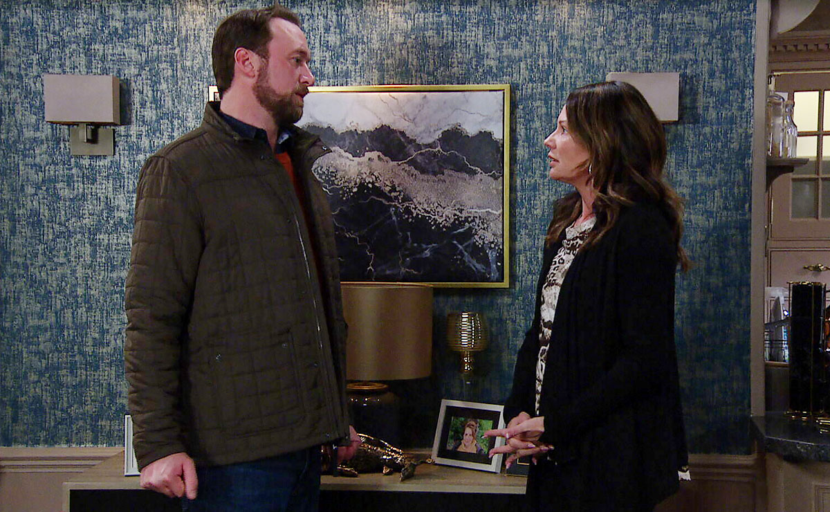 As the two talk about the situation in The Woolpack, Chas overhears and is left feeling guilty that Liam’s dumping of Ella is effectively driving her away.