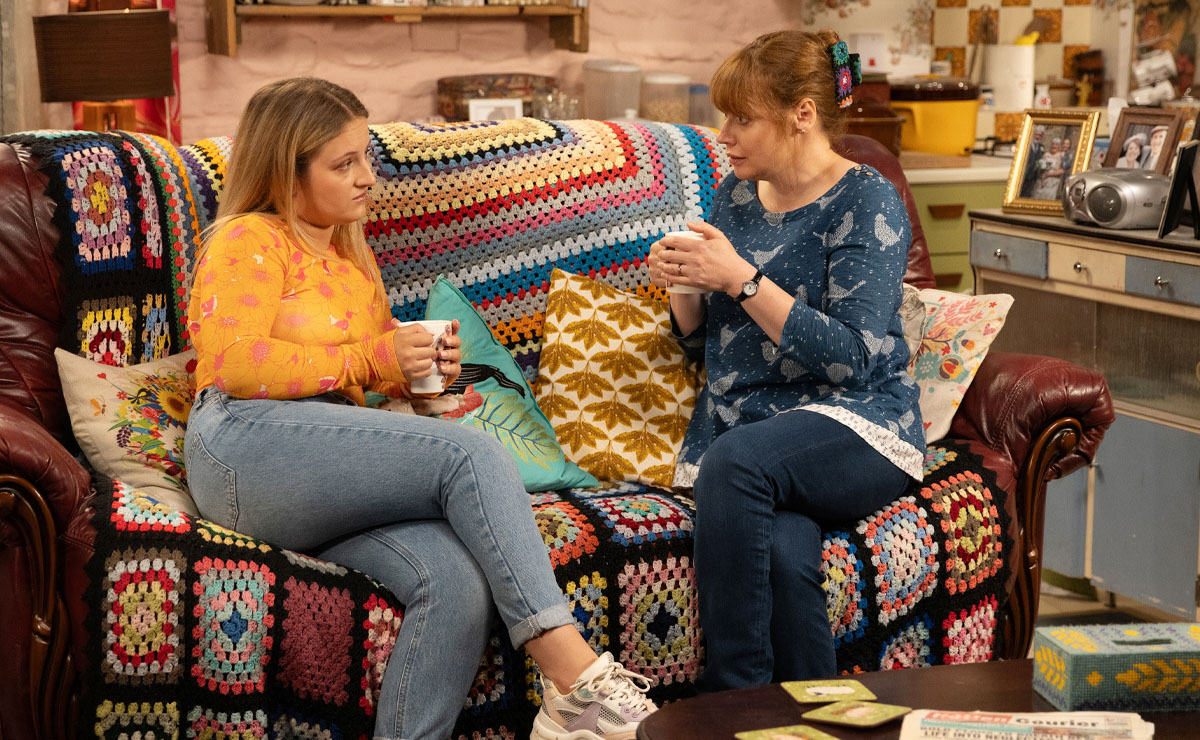 “Amelia ends up going to live with Daz in Leicester, which is nice,” Daisy explains. “We had a scene where I had to say ‘I’m off to move to Leicester with Esther’ and I couldn’t say it,” she laughs.