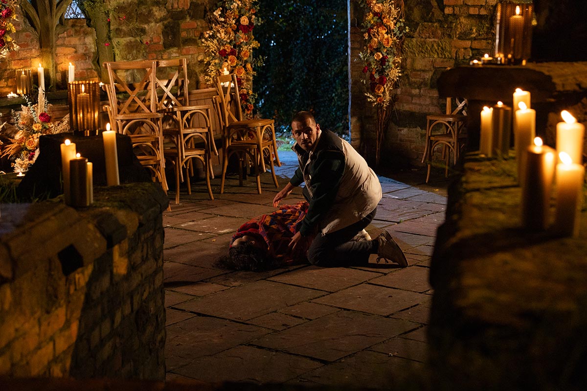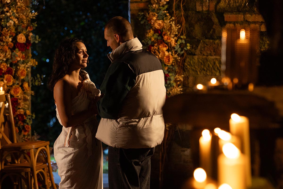 Dressed in a makeshift wedding gown, Cleo exchanges vows in an intimate ceremony, before collapsing.