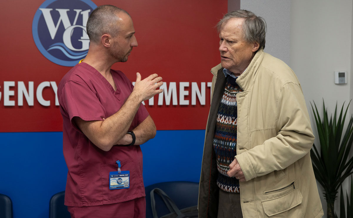 Roy (David Neilson) is concerned when he notices that a confused Carla is hearing things that aren’t there, and advises her to go home and get some rest. But when Roy later calls in to check up on her, he’s shocked to find Carla lying on the living room floor barely conscious.