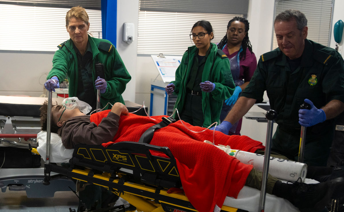 When the ambulance eventually arrives following a long delay, Dylan explains to trainee paramedic Asha (Tanisha Gorey) that Mason has been stabbed by his brothers.