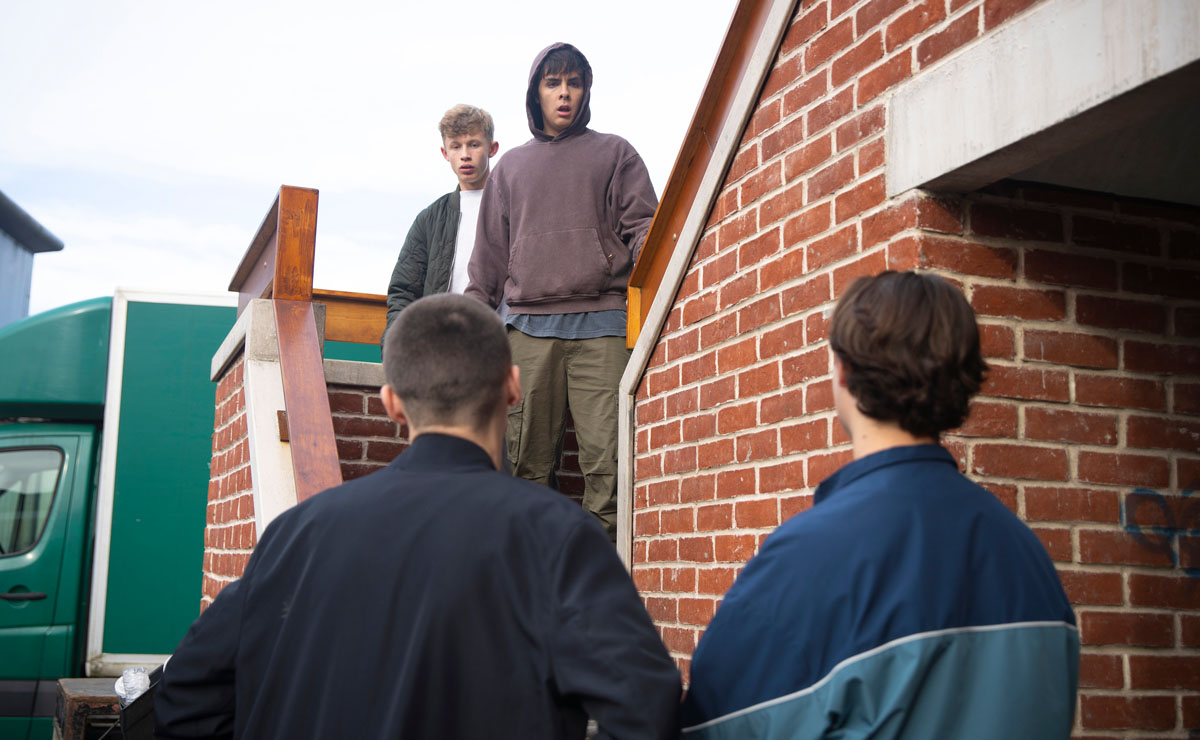 The brothers give chase as Dylan and Mason try to make their escape, and manage to corner them in the precinct’s ginnel.
