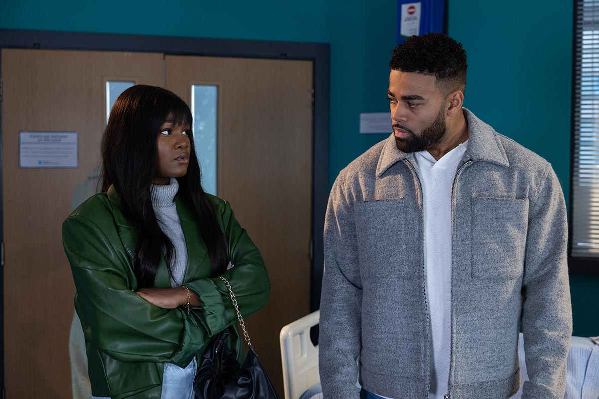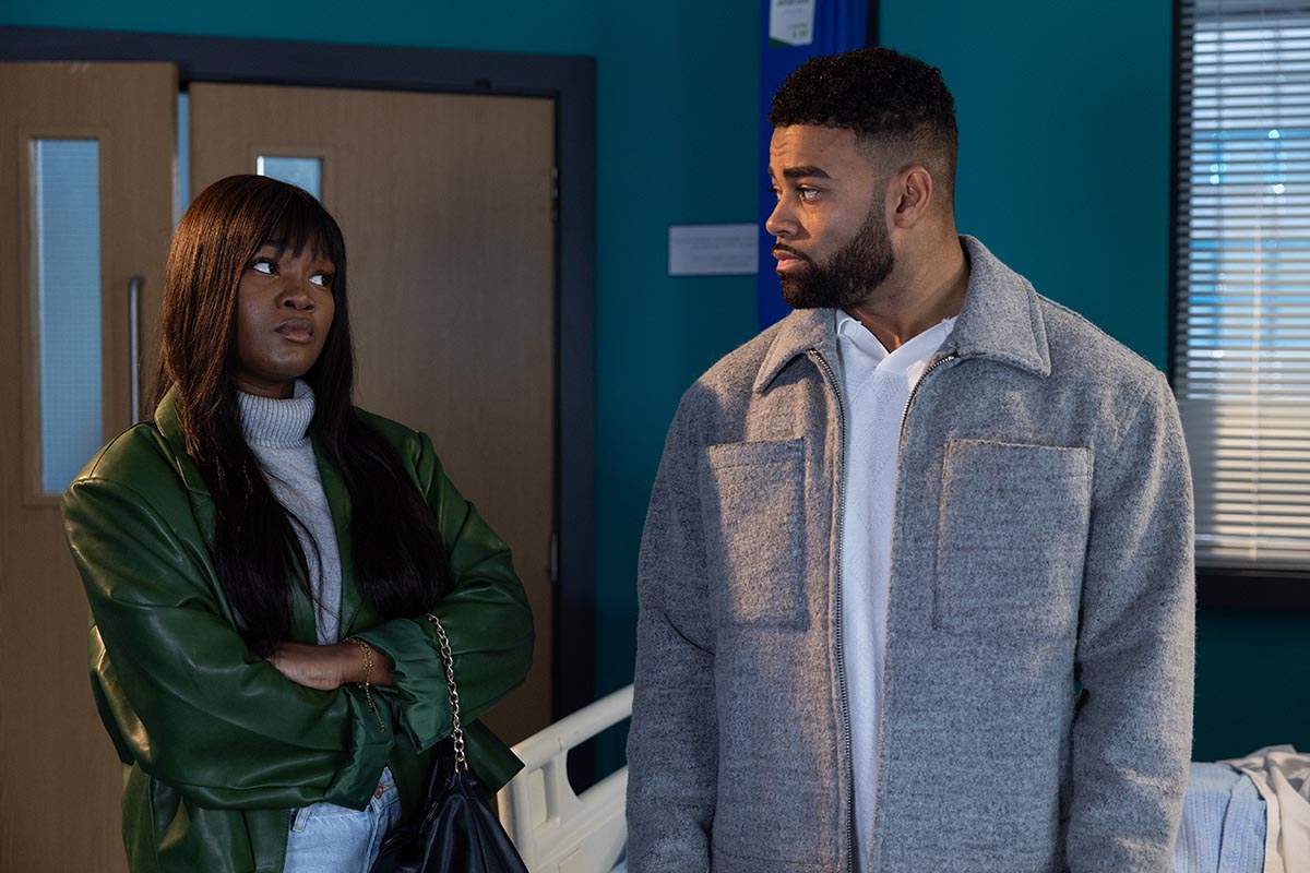 As the young McQueen’s eyes flicker open, there’s jubilation from her loved ones. No one is more excited by the development than Cleo’s older cousin Mercedes (Jennifer Metcalfe), who is currently undergoing heavy cancer treatment.