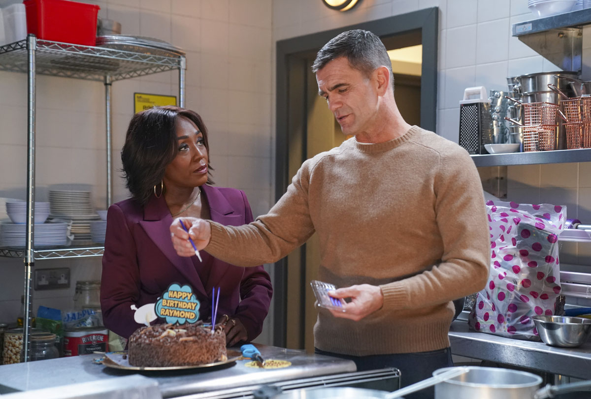 Later on Monday, Denise invites Jack and the Brannings to celebrate Raymond’s birthday, while Ravi also bags an invite, and Nigel (Paul Bradley) encourages Phil (Steve McFadden) to go along too.