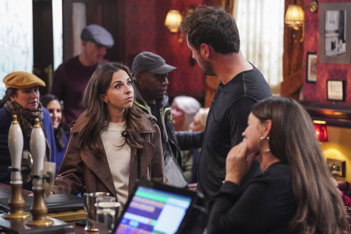 Later, Martin arrives at The Vic where he reveals that he’s only got tonight to put together the traders’ case to present to the council.