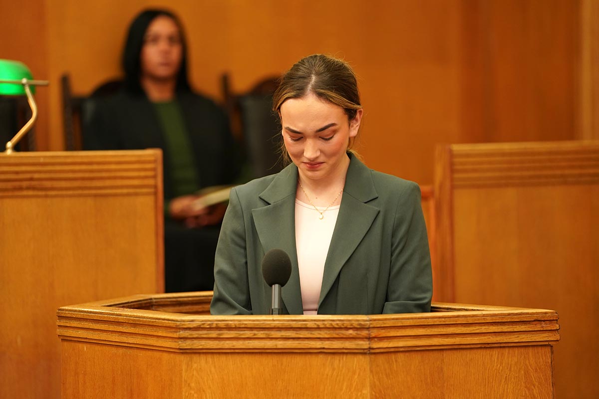 With courage, Frankie takes to the witness stand as her family and her brother, albeit behind a glass wall, watch and listen as she relives the trauma and abuse that she suffered at the hands of her twin brother.