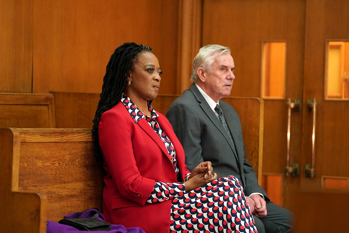 As Frankie approaches the courtroom, there’s a moment of trepidation. Last time they were all at the courthouse, JJ collapsed, just prior to learning of his diagnosis. Thankfully, this time, it’s all systems go.