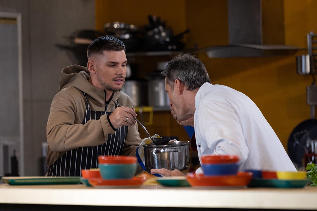 When Ste (Kieron Richardson) arrives, Tony realizes it’s likely a sign from up above and begs his best mate to help him – he needs a chef!