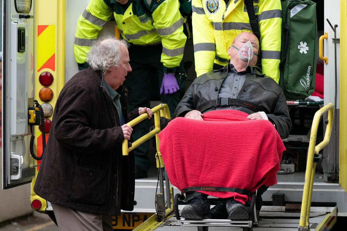 As he heads off to check on Phil, after leaving him alone the previous evening, he’s horrified to see his best friend being loaded into an ambulance!