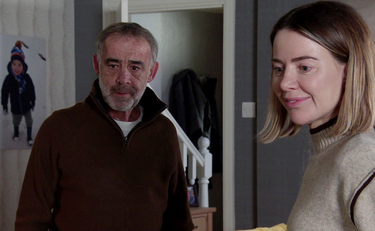 Kevin instead opens up to Tim (Joe Duttine) at the garage, but as Tim does his best to support his mate, Kevin’s upset turns to anger as he lashes out.