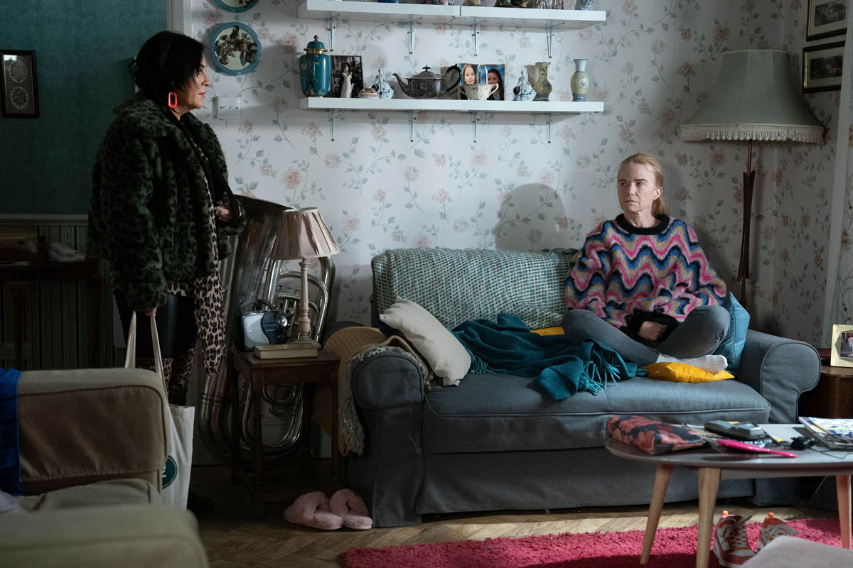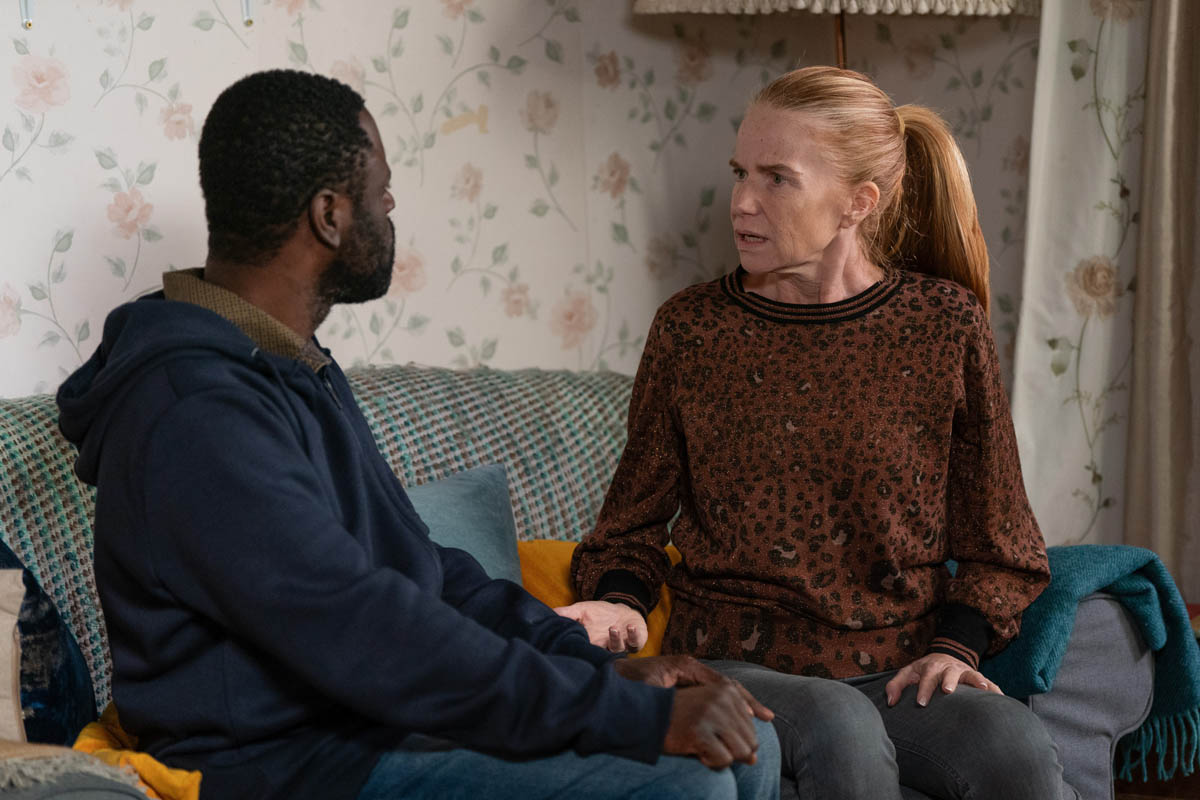 Later, when Kat (Jessie Wallace) pays her a visit, she begins to open up about the trauma she suffered at the hands of Reiss.