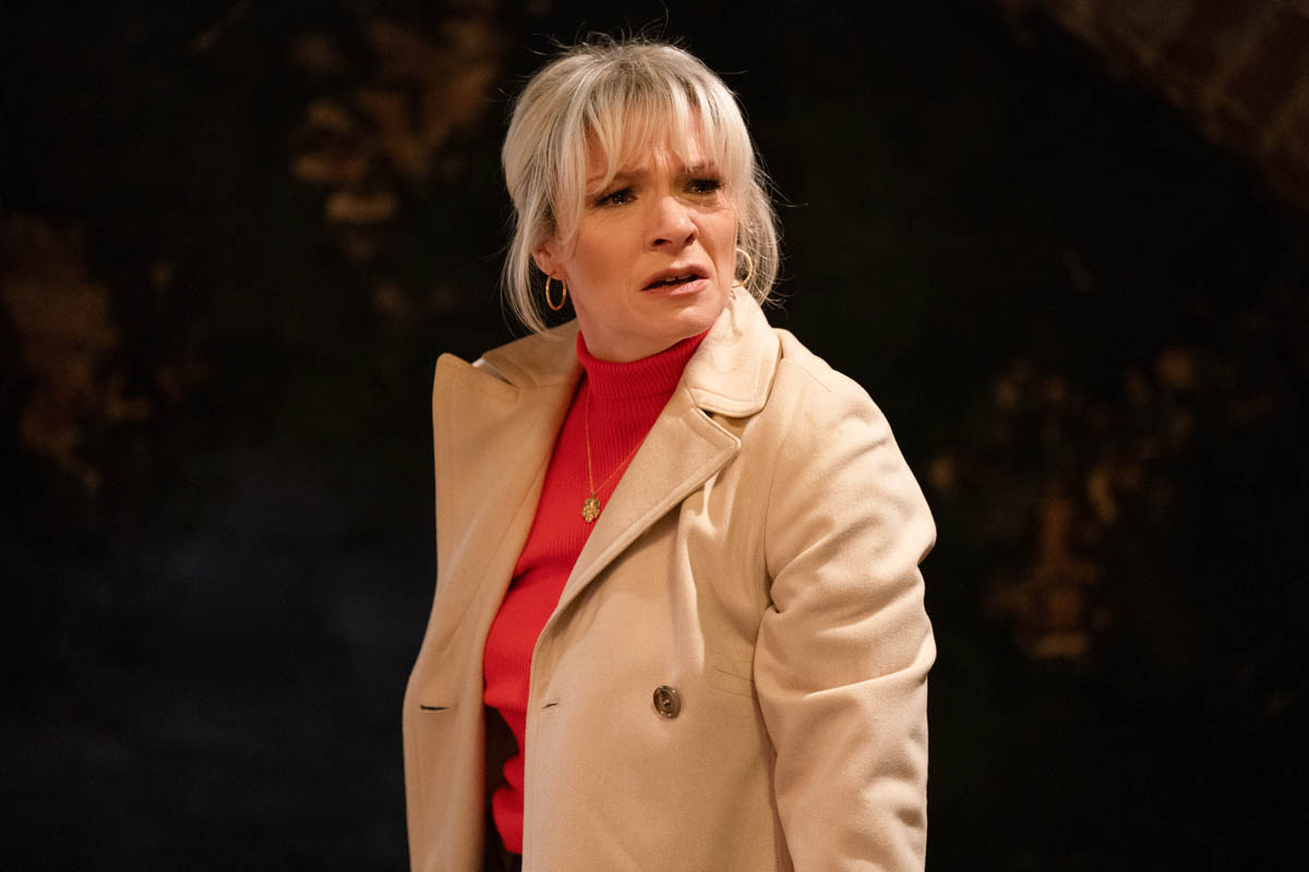 Following the blow-up, Kathy (Gillian Taylforth) is a rock to Harvey after another row at home.