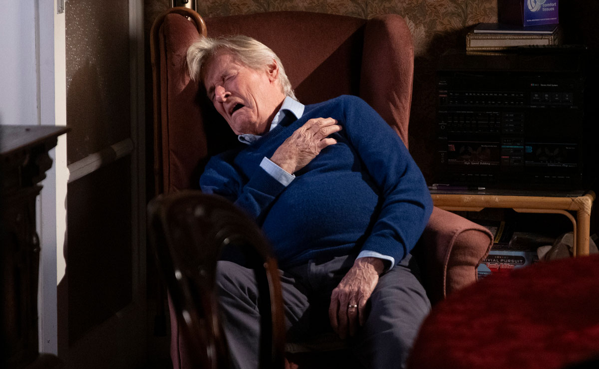 The resulting confrontation saw Ken order Cassie to leave his house, before he suddenly collapsed into his chair, suffering a heart attack.