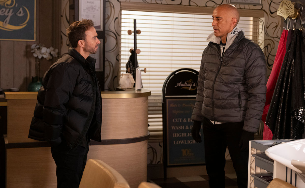 Meanwhile, the previous evening, David is locking up the salon when Andy (Andrew Goth) turns up unexpectedly. David has recently been working as a getaway driver for Andy as he does all he can to raise funds to pay back Harvey, a fact which Shona isn’t best pleased about.