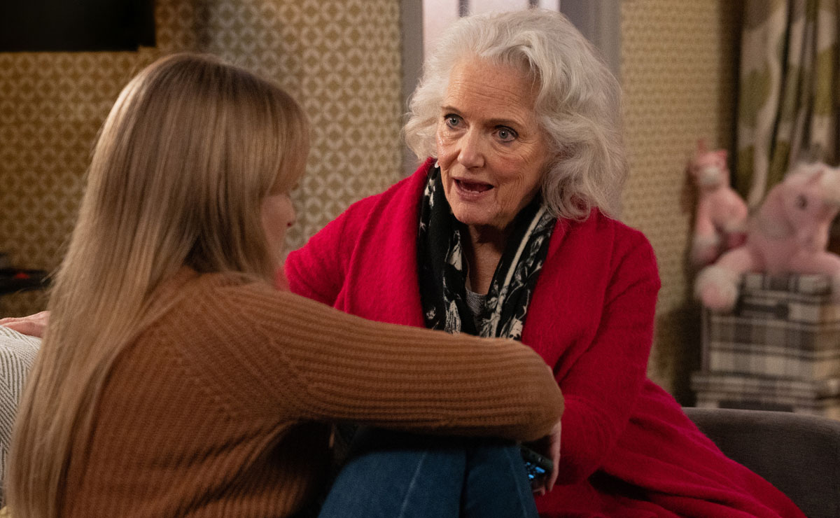 Unable to find the right time to tell boyfriend Jacob (Joe-Warren Plant), as he pushed her away whilst struggling with his grief over mum Leyla’s (Roxy Shahidi) tragic death, Sarah confided in grandmother Charity (Emma Atkins).