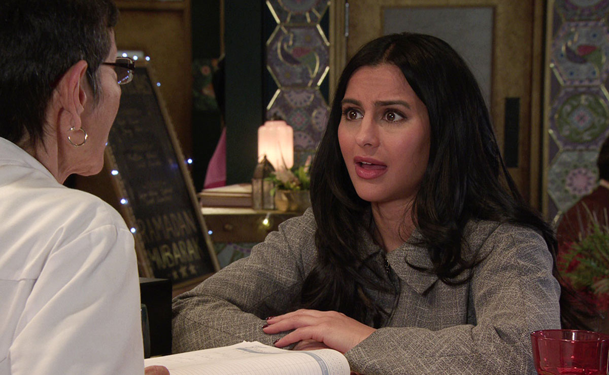 Alya encouraged Yasmeen to go for it, and this week there’s surprise when Yasmeen meets with her in the Rovers and reveals that she’s already managed to sell her half of the business. Alya is intrigued but Yasmeen tells her all will soon be revealed, as the new partner is due to meet with them at any moment.