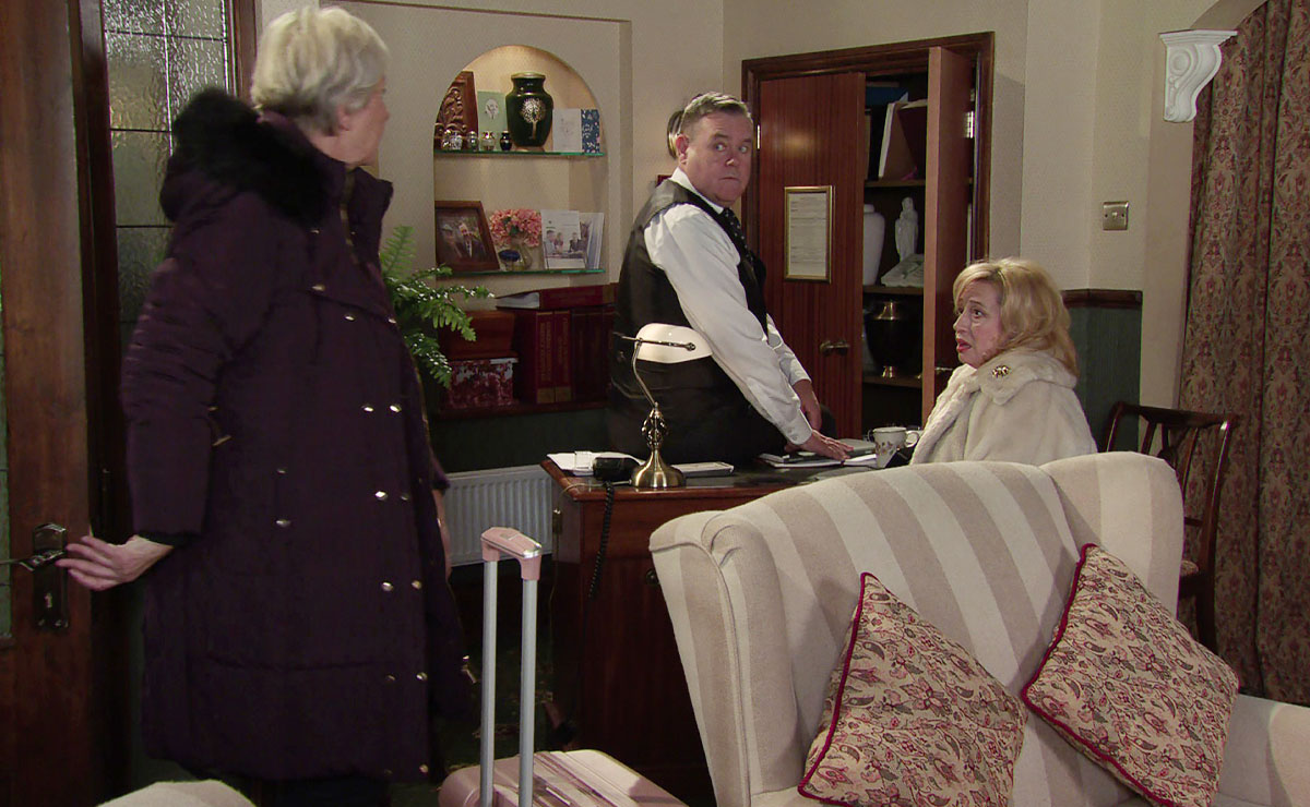 Next week, Eileen’s suspicions are aroused further when she finds Julie in the undertakers with George discussing funerals.