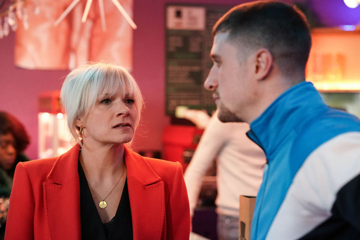 This week, we picked the storyline back up, as Nicola (Laura Doddington) tried to warn Sharon (Letitia Dean) and Zack (James Farrar) off revealing to Teddy that Zack is actually Barney’s biological dad.