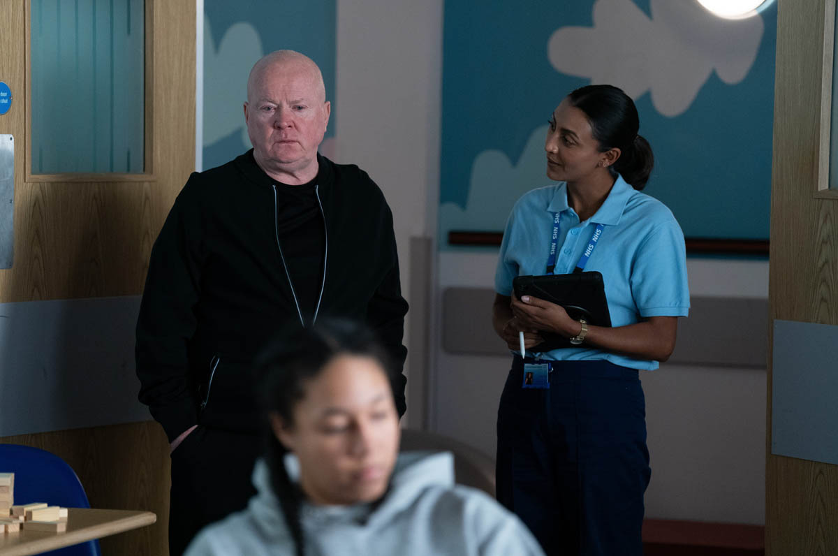 Also next week, Nigel (Paul Bradley) continues to struggle with memory issues. After a difficult day, he breaks down in front of Linda (Kellie Bright), one of the few people who knows that he’s been diagnosed with young-onset dementia.