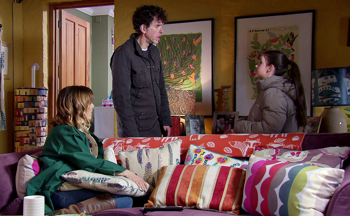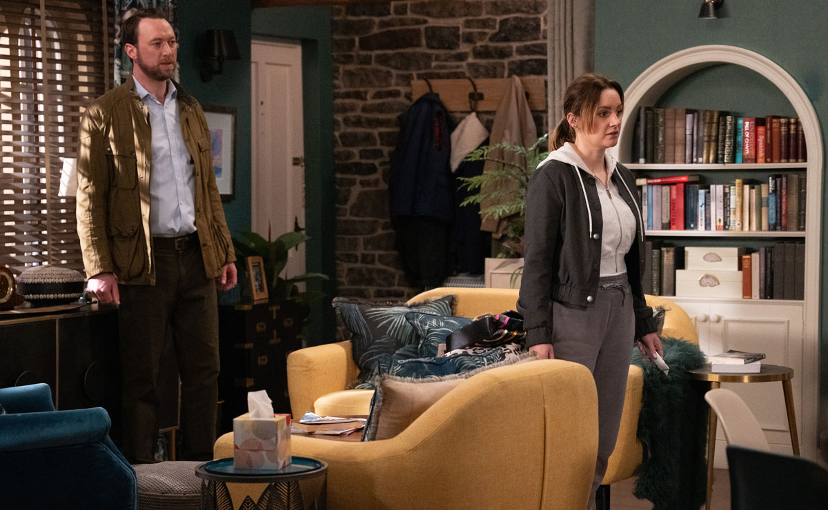 Marlon doesn’t do himself any favours when he later plants a tracker in April’s coat, and it’s not long before he’s discovered when Rhona gets a notification about a new bluetooth device on her phone.
