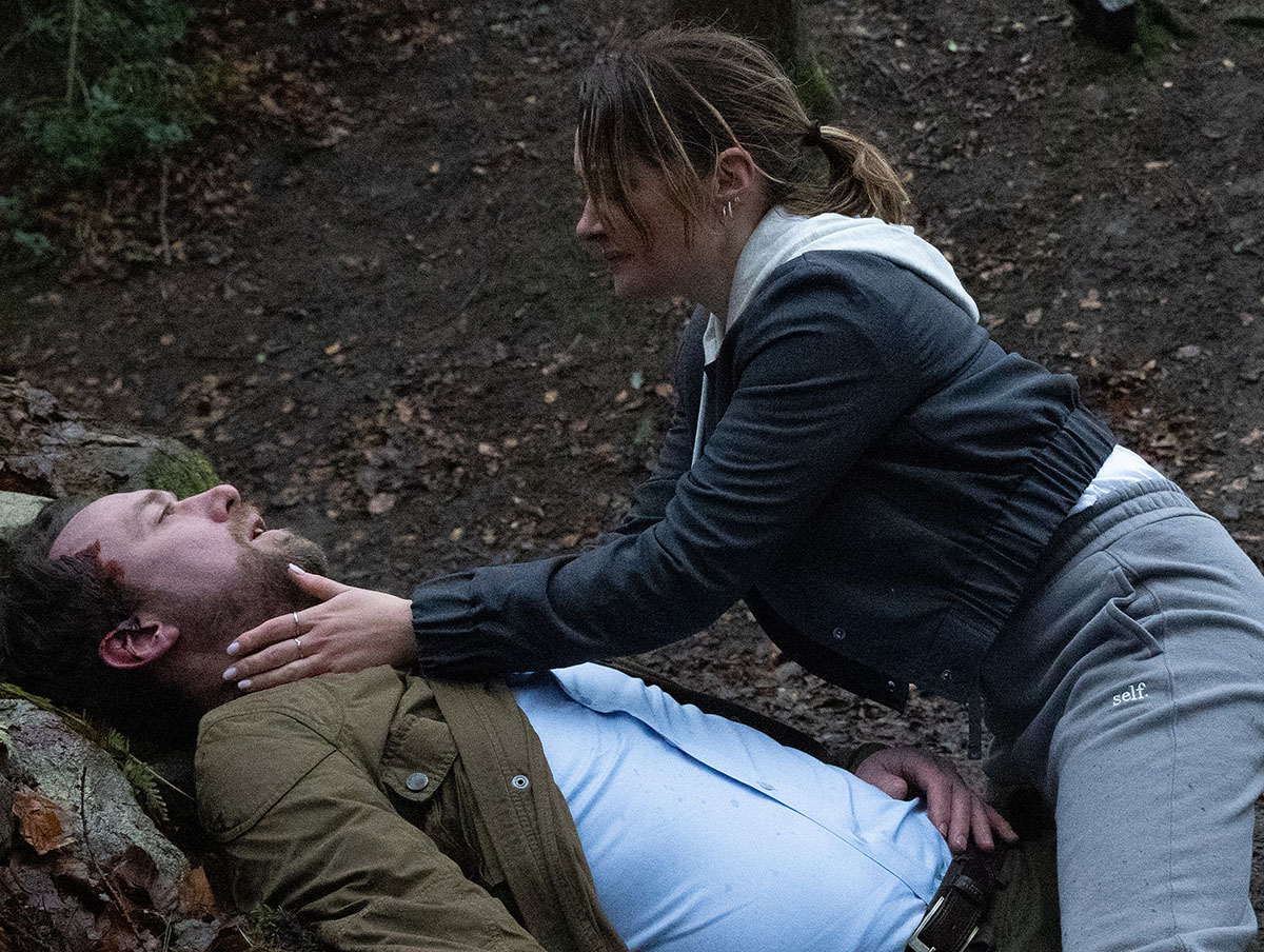 As Liam follows Ella into the woods, his attempts to calm her lead to a confrontation where Ella pushes Liam. As he loses his balance, Liam falls and hits his head on a rock.
