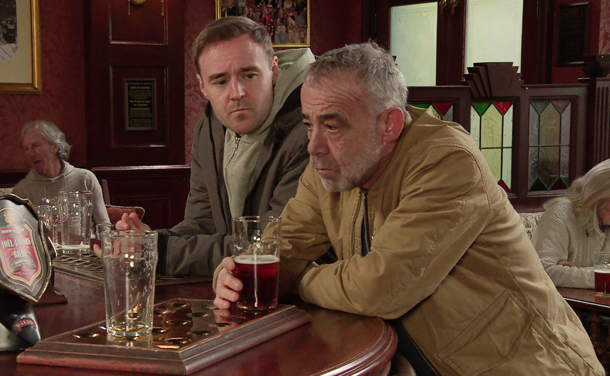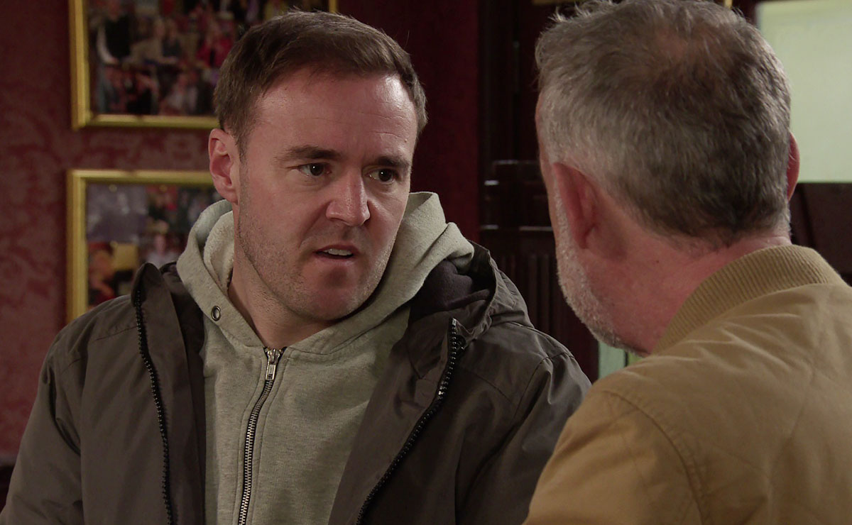Ronnie’s good mood is quickly soured when he has another run-in with Mick however, and losing his temper he pins Mick up against the wall, forcing Kevin and Tyrone to step in.