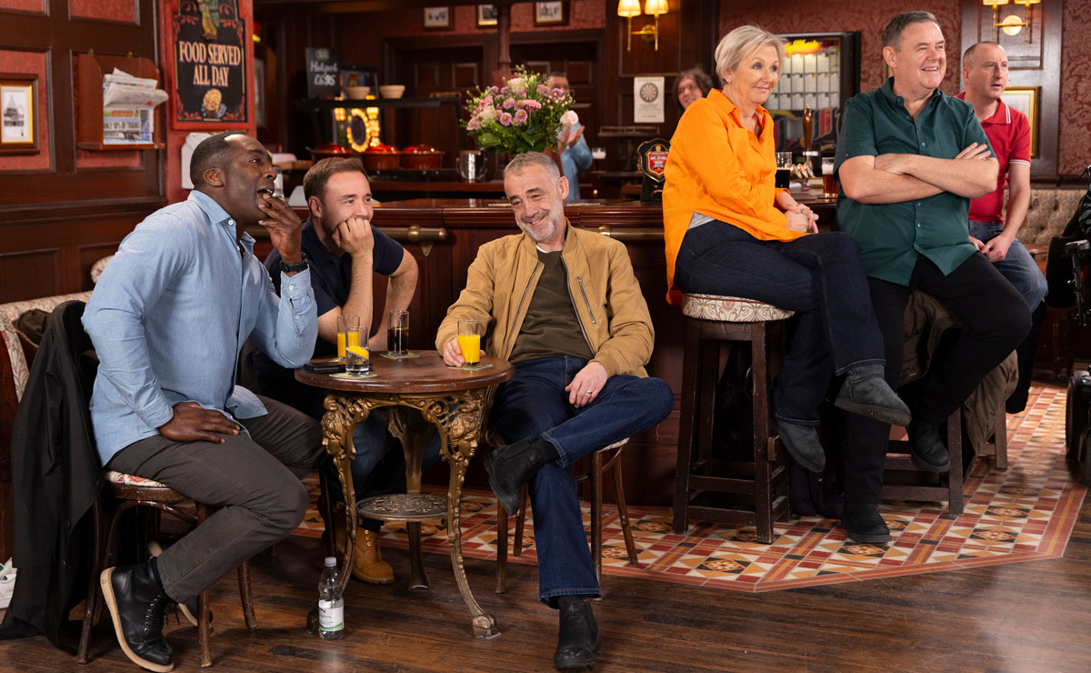 While Jack still continues to give his dad the cold shoulder, Kevin joins Tyrone, Ronnie, Tim (Joe Duttine), George (Tony Maudsley) and Eileen (Sue Cleaver) for a darts competition in the Rovers.