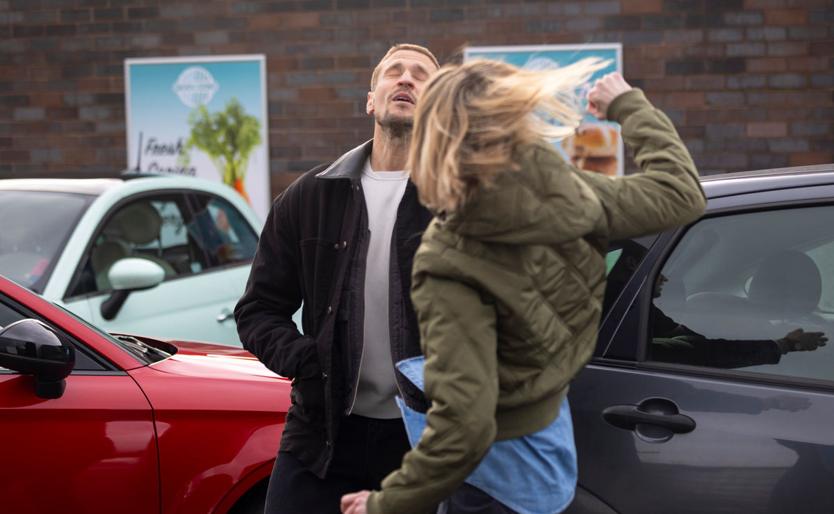 Abi immediately apologises but Carl merely shrugs it off as he heads back into his car, which then refuses to start.