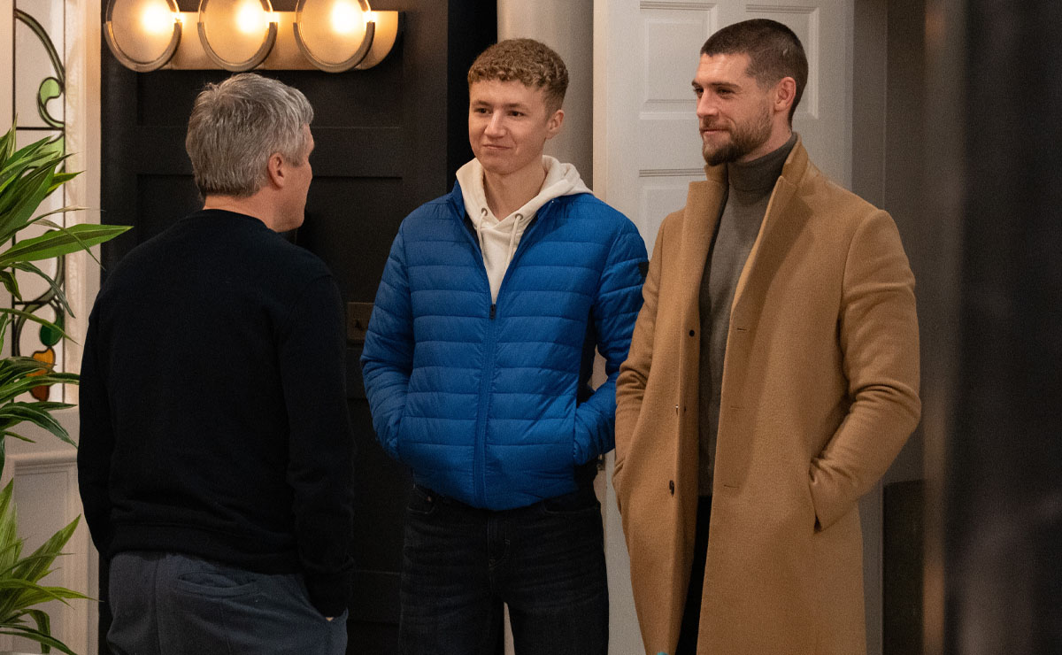 No doubt dubious of Caleb’s sudden interest in getting to know him, despite the fact he played the hero by getting Caleb to a private clinic following the attack, Joe brings along half-brother Noah (Jack Downham) to the lunch at Mill Cottage.