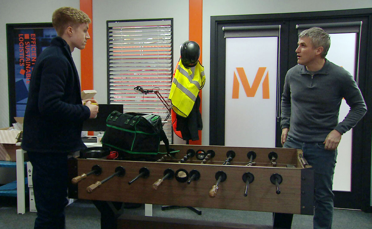 Caleb is determined to get to the bottom of things, and that afternoon hatches a plan to investigate further. Purposely damaging a light fitting at the depot, Caleb summons Noah to fix it in order to get him on his own.