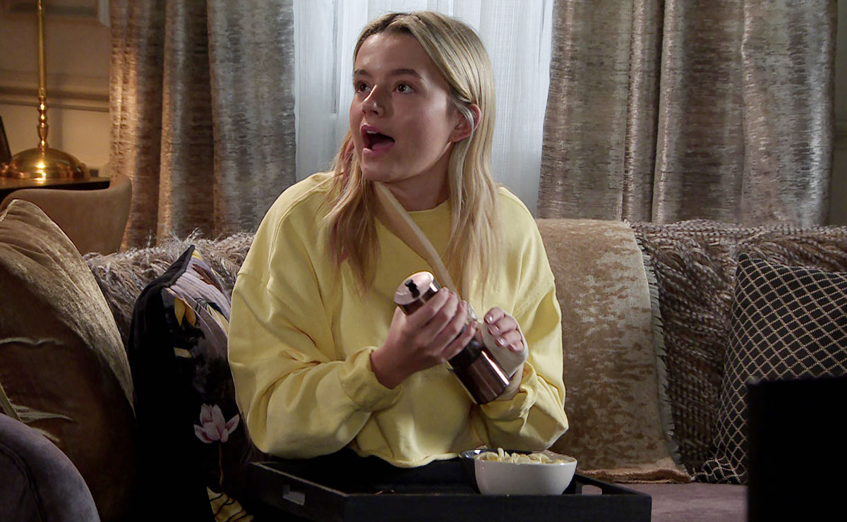 A fed-up Carla later ends up babysitting Betsy at the flat. While preparing lunch, she watches in disbelief as Betsy casually uses both hands to grind pepper over her pasta—despite claiming that her arm is still no better!