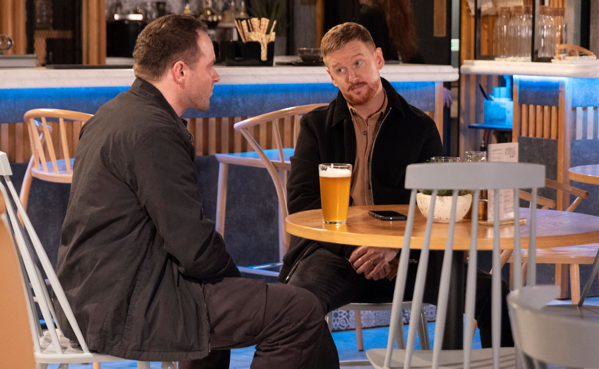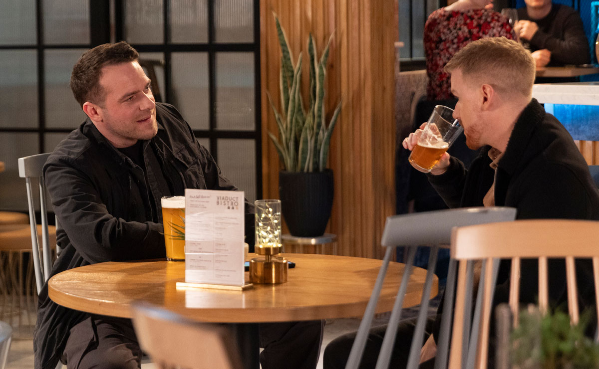 At the café, Gary (Mikey North) opens up to Maria (Samia Longchambon) about how the shop’s takings have been dwindling, and he’s toying with the idea of offloading it to invest in the builder’s yard instead.