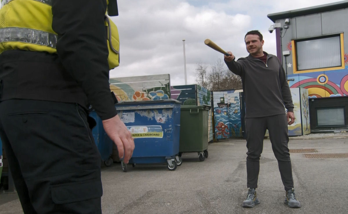 Having been heavily drinking, Mick took his frustrations out on Craig by attacking him with a baseball bat.