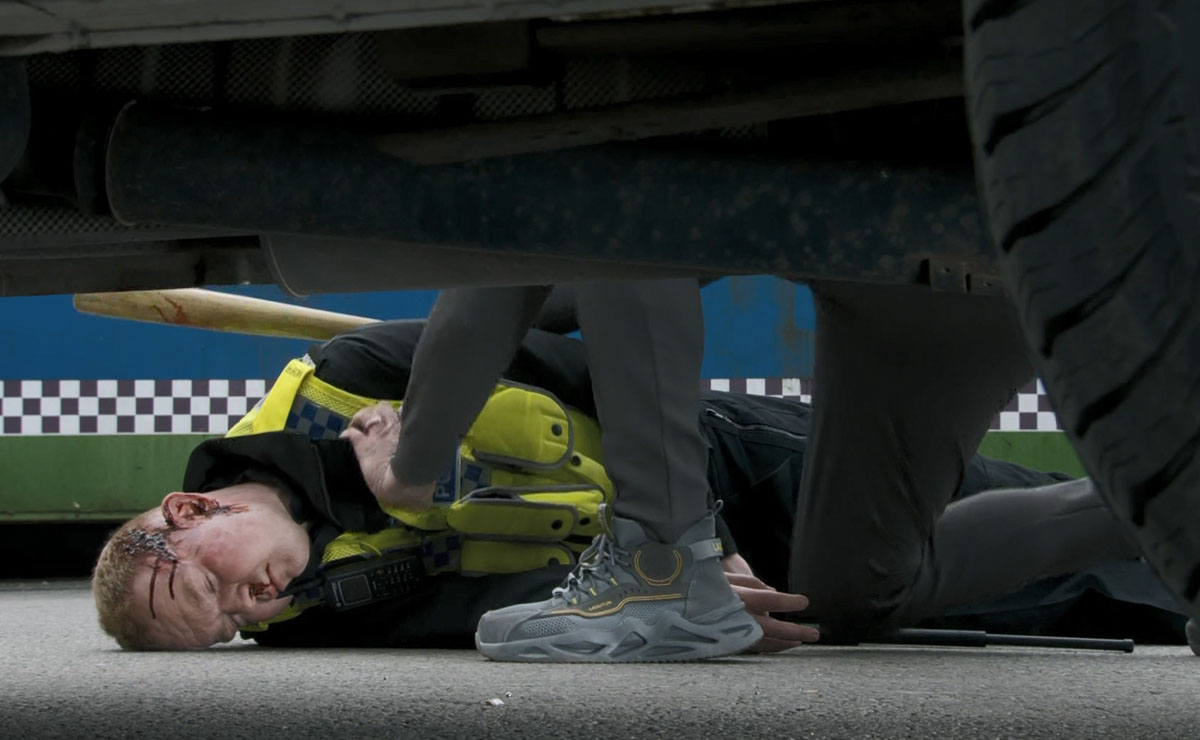 Although Mick briefly got the upper hand on Kit as they fought it out, the police arrived in the nick of time, allowing Kit to place Mick under arrest for Craig’s death.