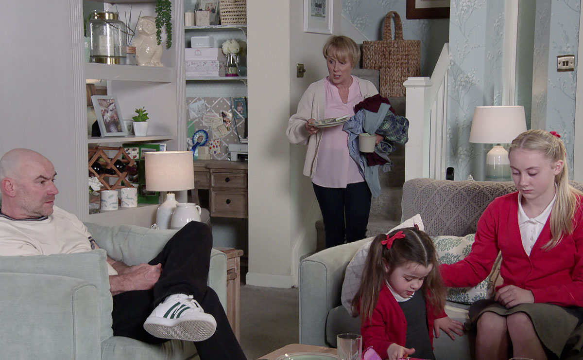 Later in the week, Maria discusses the Platt family’s BBQ plans with Shona (Julia Goulding), fully aware that Lou is hovering nearby. As she walks past, Maria gives her a pointed warning to stay away.