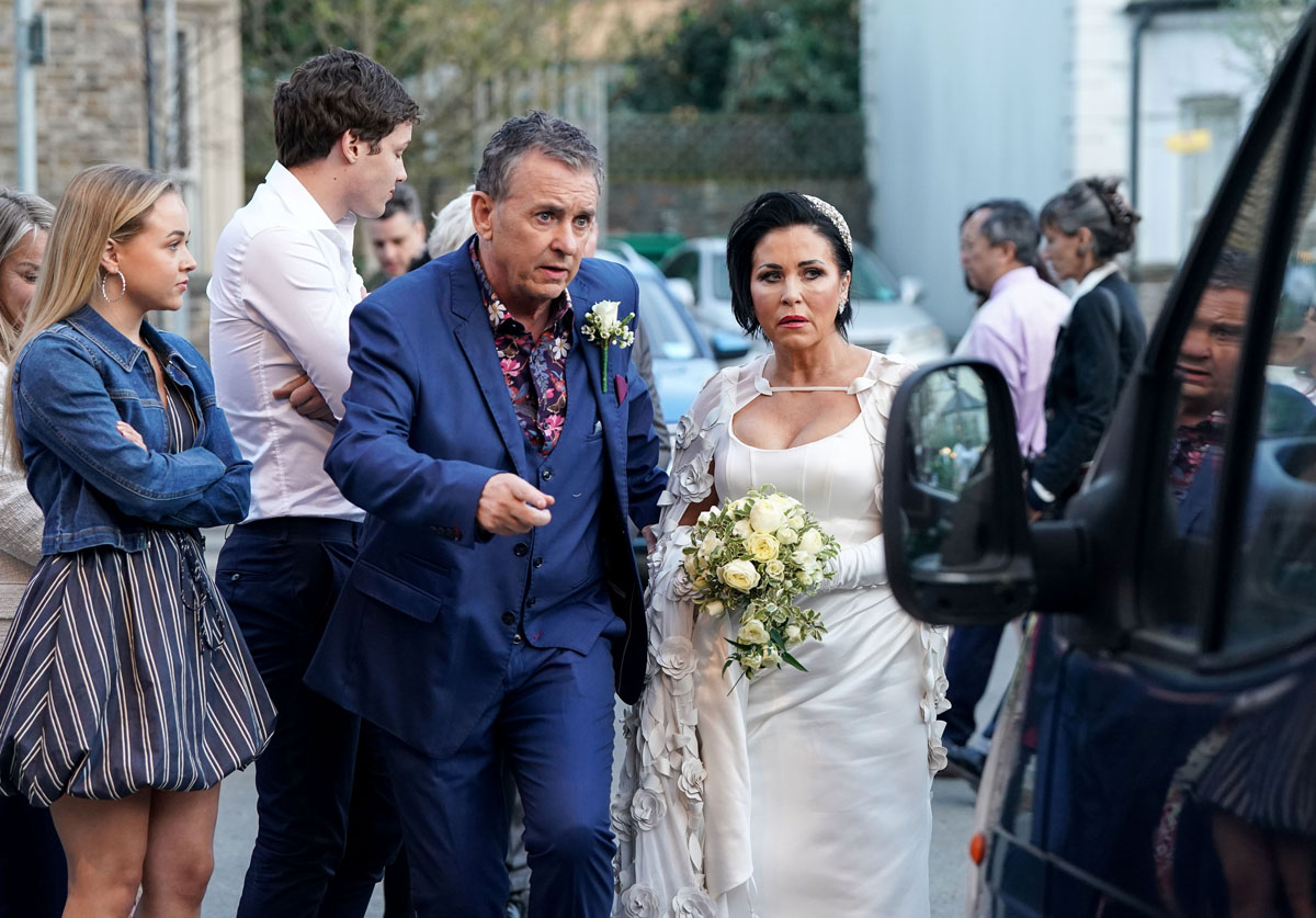 Everyone gets dressed up for the occasion – but with the shadow of the video hanging over the happy couple, will they make it down the aisle?