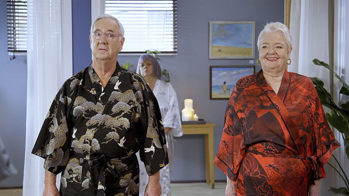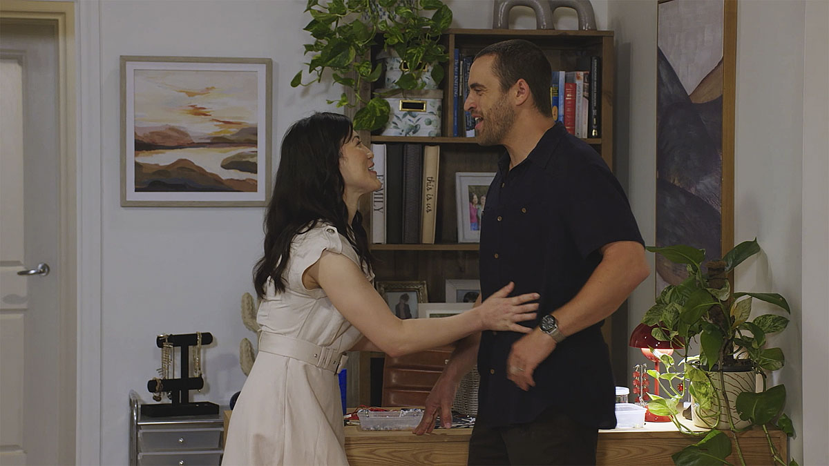 Leo (Tim Kano) and Krista (Majella Davis) are about to embark on a honeymoon tour of Europe, where they’re planning to renew their wedding vows.