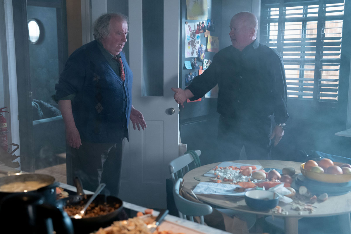 The situation becomes dangerous when the pair grapple over a pan of boiling water, and Phil ends up with a burn to his arm.