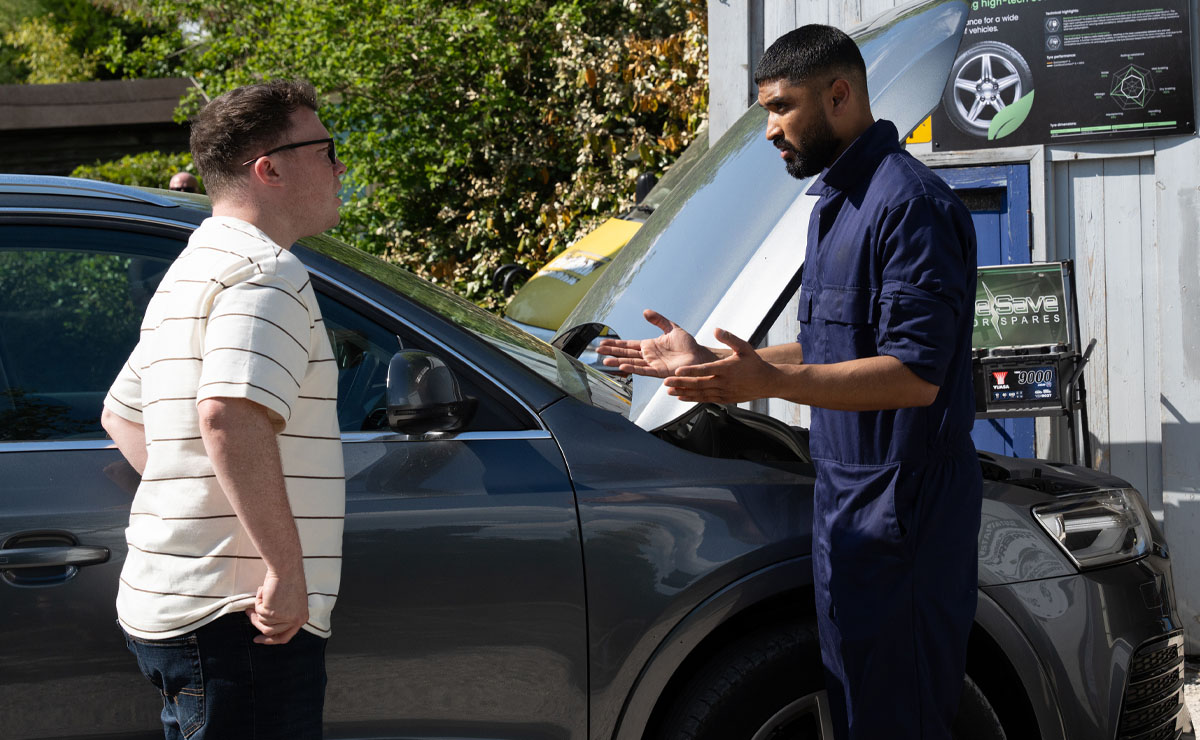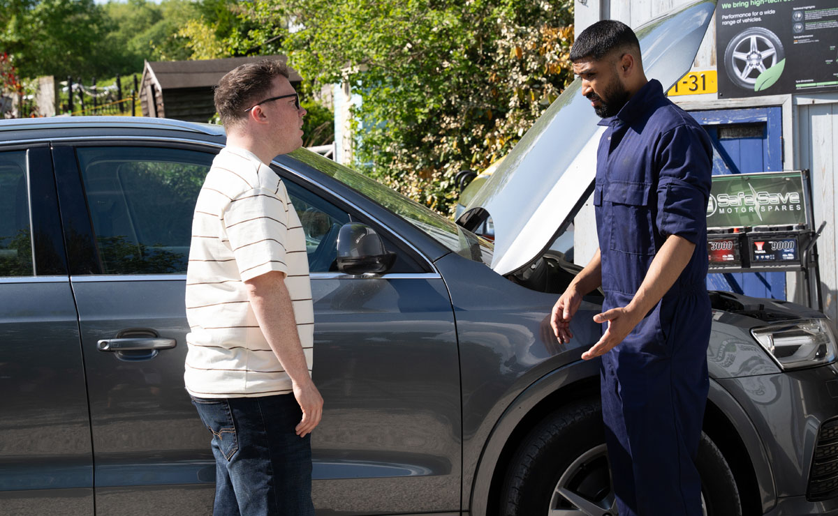 Frustrated that the issues with her car are still persisting, she heads back to the garage where Sarah offers to join her for a test drive to try and diagnose the problem.
