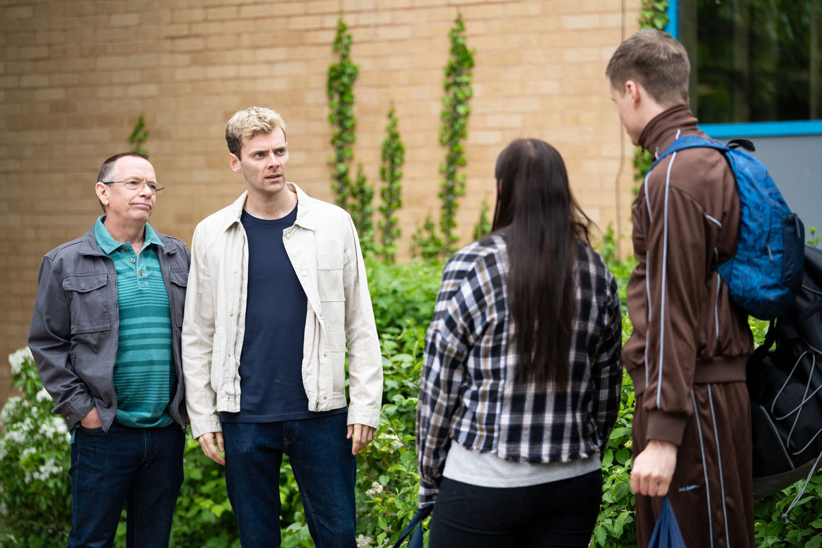 Before long, Peter (Thomas Law) and Ian (Adam Woodyatt) arrive, asking questions about why he’s back.
