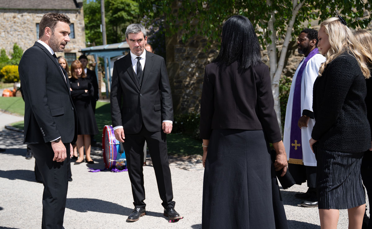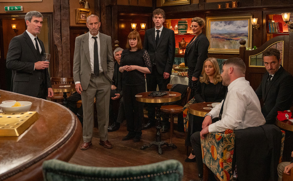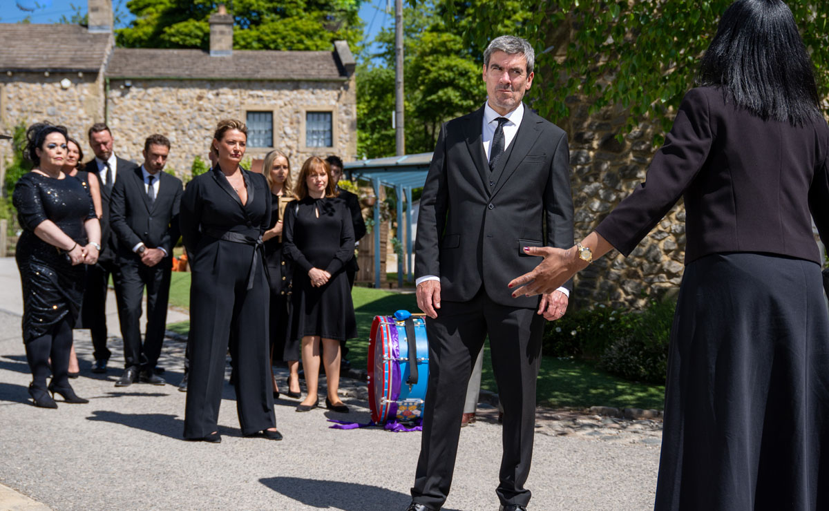 Over at The Woolpack, the Dingles hold their own memorial for Nate, but things quickly unravel. Cain, already struggling to keep a lid on it, turns his grief towards Tracy, furious that she’s keeping him from saying goodbye.