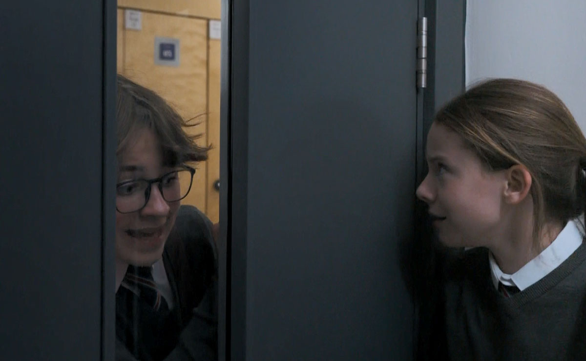 When Sam tried to escape into a nearby classroom, he found that cousin Lily had locked herself in, and she refused to allow Sam to enter.