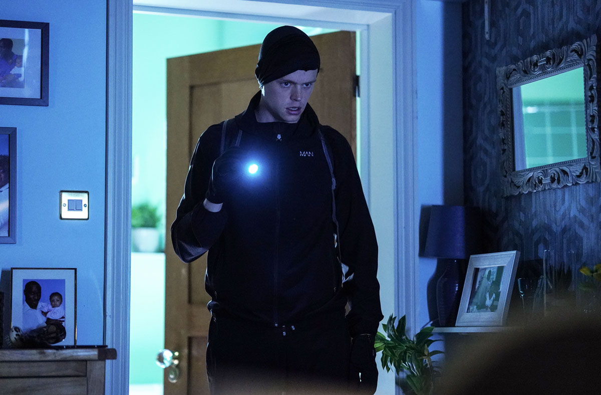 He snuck into No. 25 while Oscar was looking after Louie (Jake McNally) and Jimmy, and turned up again this week, with Jack (Scott Maslen) interrupting as Mike and his mate Harrison went to give Oscar a beating.