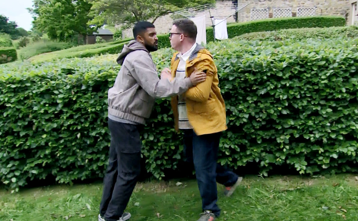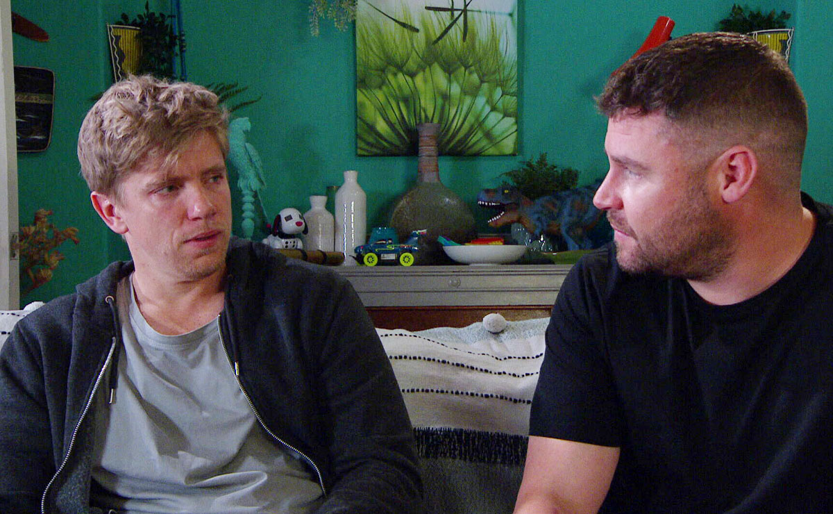 Having met up with ‘Mike’ (Macaulay Cooper) a couple of times, who he’d begun chatting to as he sought answers about his sexuality in an online support group, Mike’s true colours were finally revealed when he came to the house claiming his partner had thrown him out.