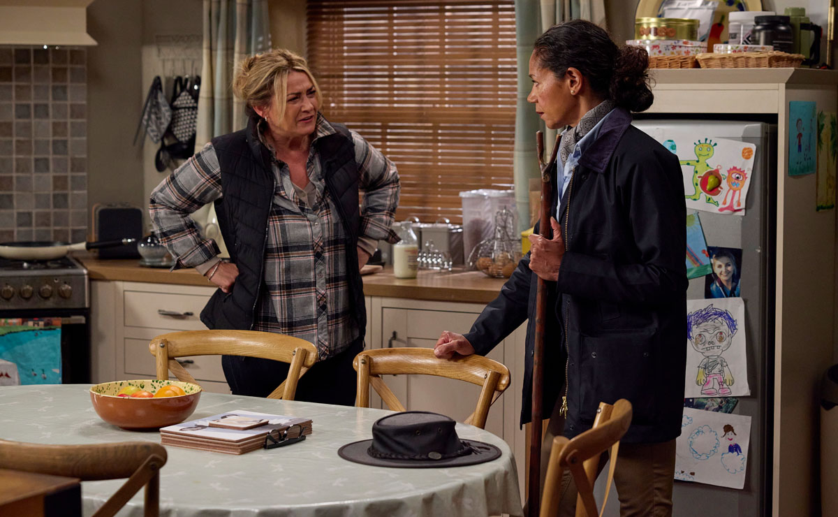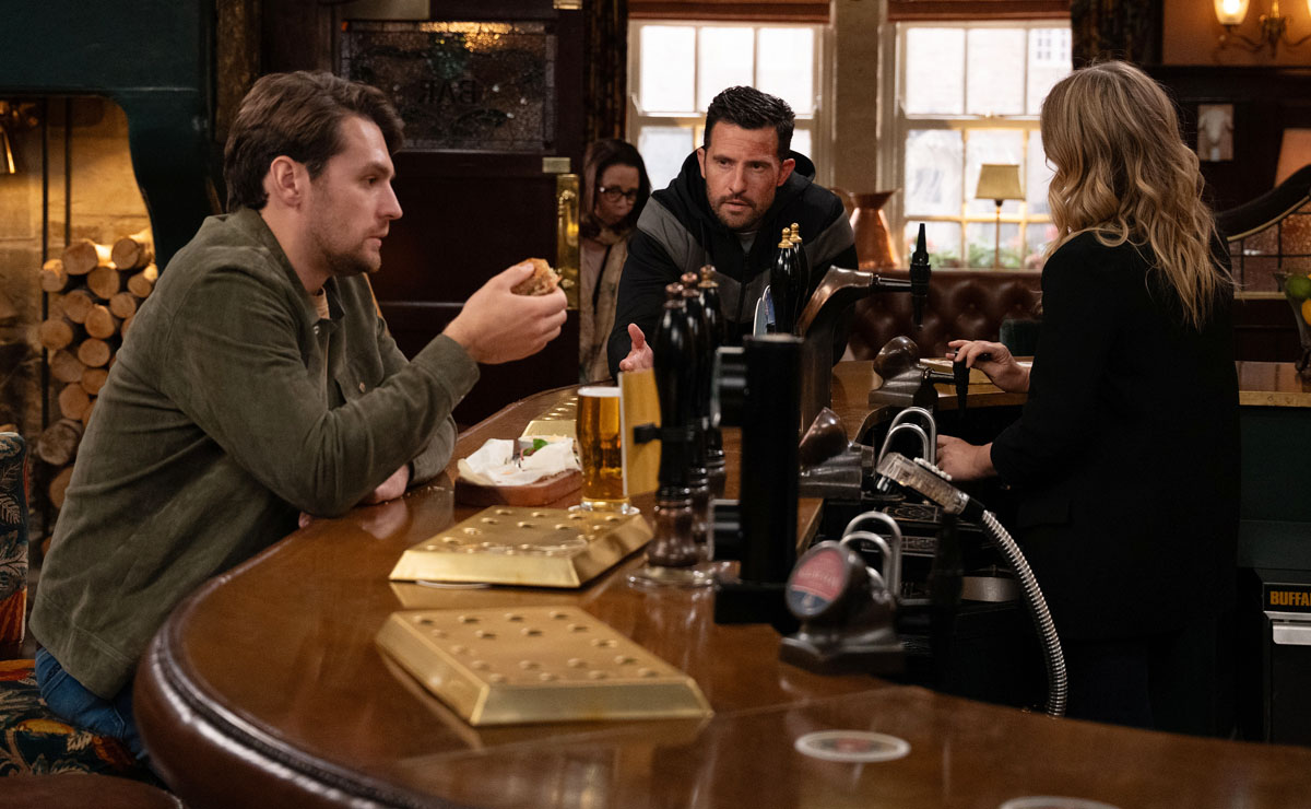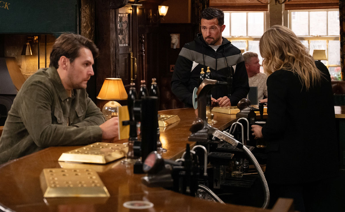 Next week, Mack is particularly keen to spend some quality time with Charity, but she’s otherwise distracted and has to work. Clearly disappointed, Mack later joins Charity at The Woolpack. Ross cannot help but quiz, and slightly taunt, Mack on the surrogacy news, putting Charity on edge.