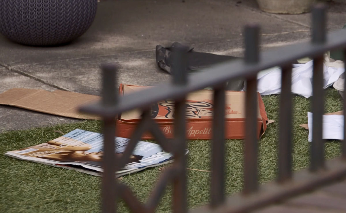 The new residents at No.6 have already got on David’s bad side, after Betsy (Sydney Martin) sneaked a pizza box and other items into David’s recycling bin. David retaliated by removing the rubbish and placing it on Carla and Lisa’s front garden.